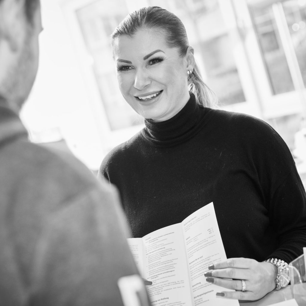 Ihr Lehrgang bei IQ wird begleitet von individueller Beratung und Betreuung vor, während und nach Ihrer Qualifikation! Denn wir haben Ihren Erfolg im Blick und Ihre Weiterempfehlung zum Ziel. Dafür bietet IQ Ihnen einen hervorragenden persönlichen Service – von 7:30 Uhr morgens bis in den Abend hinein ist jemand für Sie vor Ort!